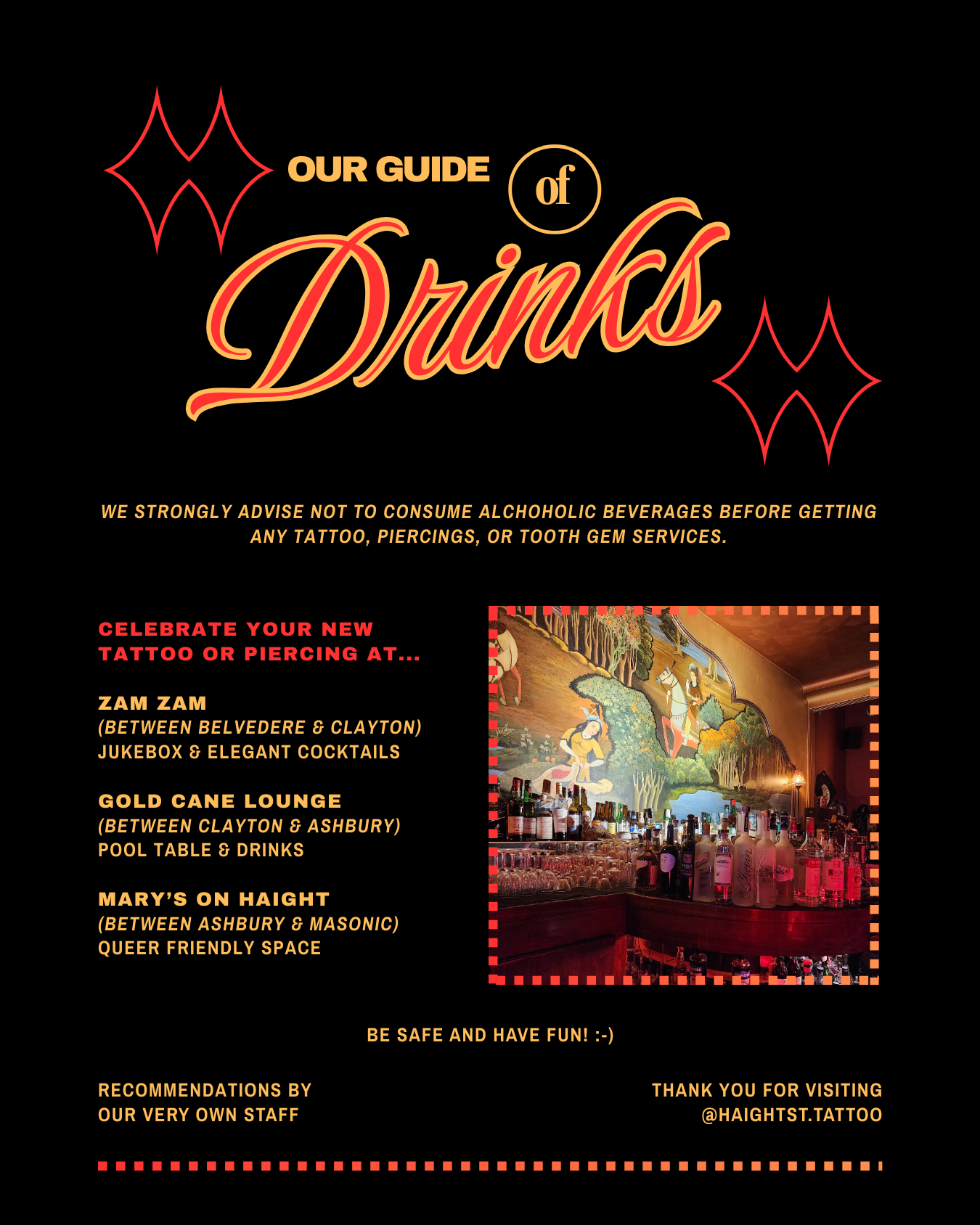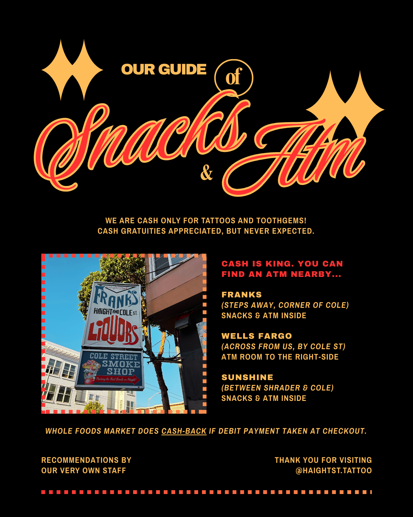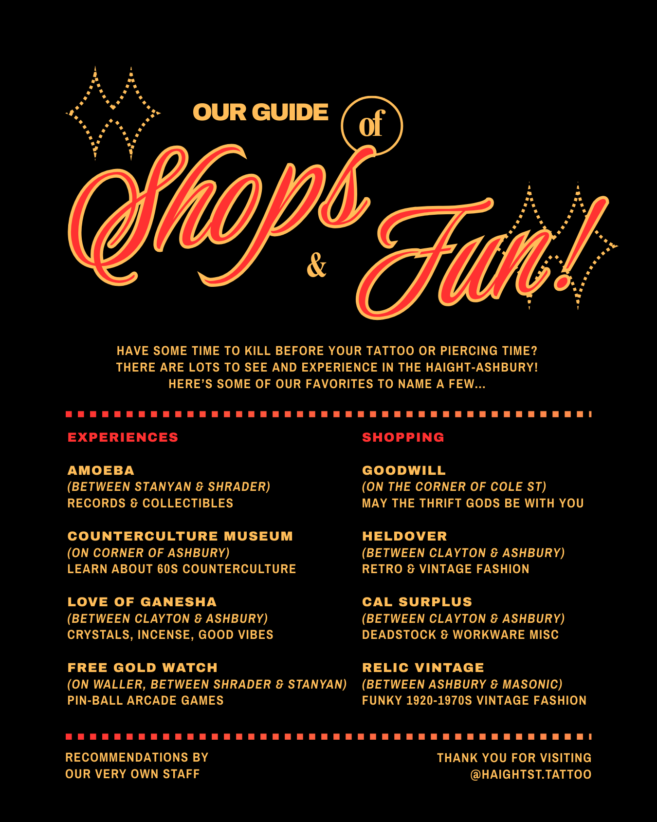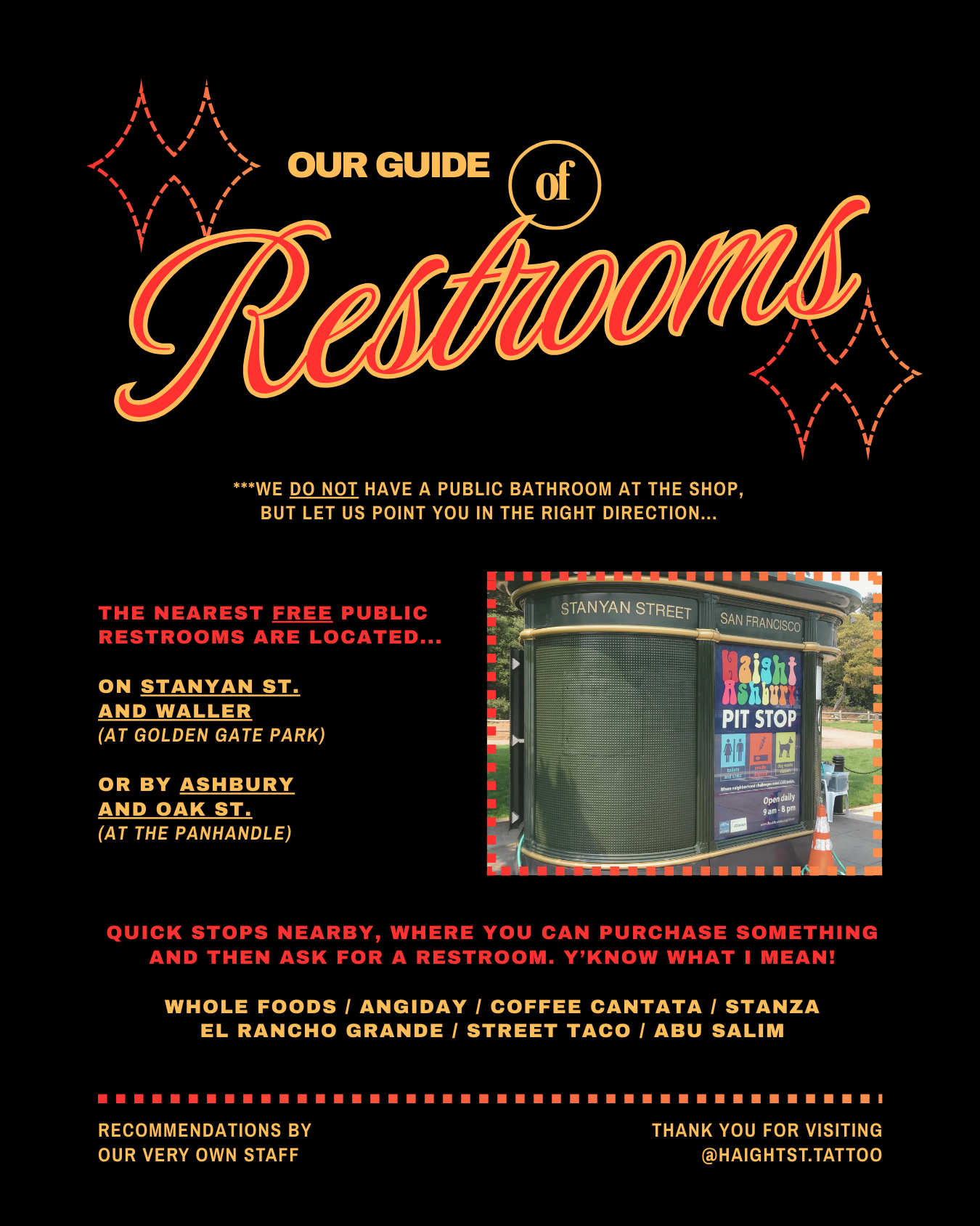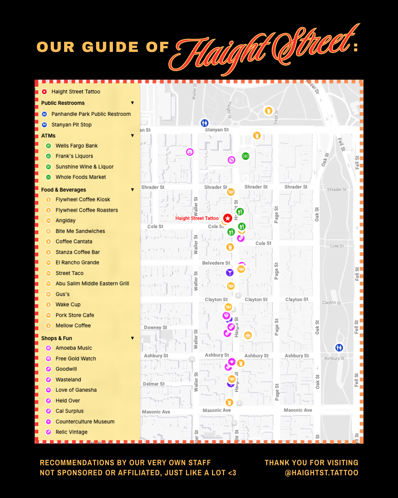 Our HAIGHT Street GUIDE HAIGHT STREET TATTOO from Our Guide Restrooms Nearby Quick Eats & Drinks Cash Rules Support Small Biz Bars The Map